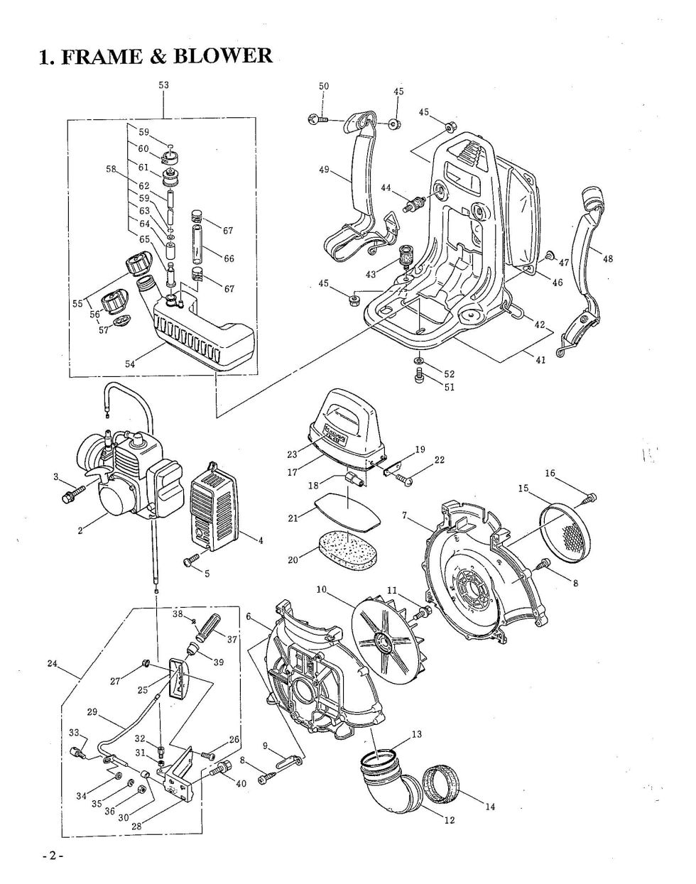 Thank you for shopping at MaruyamaParts.com and for using the parts lookup system to find parts for your BL480. You have selected the Frame and Blower diagram for the Maruyama BL480 Blowers. Below you will find an interactive part diagram for the BL480 Frame and Blower. If you find the part in the diagram you need you may click on the item number in the diagram or find it in the parts list below the diagram. For the BL480 parts not shown in this diagram you may select from one of the other BL480 part assemblies or select a different Blowers altogether. Thanks for shopping with us at MaruyamaParts.com and for making us your source for Maruyama Blowers parts.