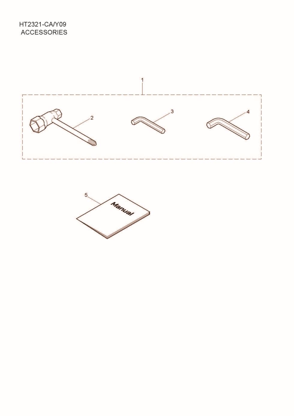 Thank you for shopping at MaruyamaParts.com and for using the parts lookup system to find parts for your HT2321-CA. You have selected the Accessories diagram for the Maruyama HT2321-CA Hedge Trimmers. Below you will find an interactive part diagram for the HT2321-CA Accessories. If you find the part in the diagram you need you may click on the item number in the diagram or find it in the parts list below the diagram. For the HT2321-CA parts not shown in this diagram you may select from one of the other HT2321-CA part assemblies or select a different Hedge Trimmers altogether. Thanks for shopping with us at MaruyamaParts.com and for making us your source for Maruyama Hedge Trimmers parts.