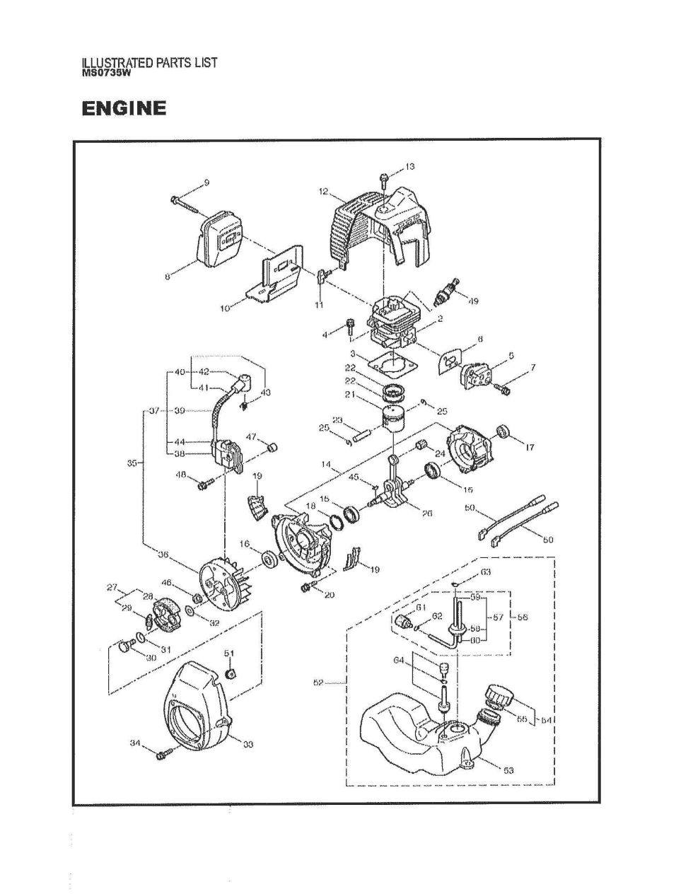 Thank you for shopping at MaruyamaParts.com and for using the parts lookup system to find parts for your MS0735W. You have selected the Engine diagram for the Maruyama MS0735W Engine Driven Sprayers. Below you will find an interactive part diagram for the MS0735W Engine. If you find the part in the diagram you need you may click on the item number in the diagram or find it in the parts list below the diagram. For the MS0735W parts not shown in this diagram you may select from one of the other MS0735W part assemblies or select a different Engine Driven Sprayers altogether. Thanks for shopping with us at MaruyamaParts.com and for making us your source for Maruyama Engine Driven Sprayers parts.