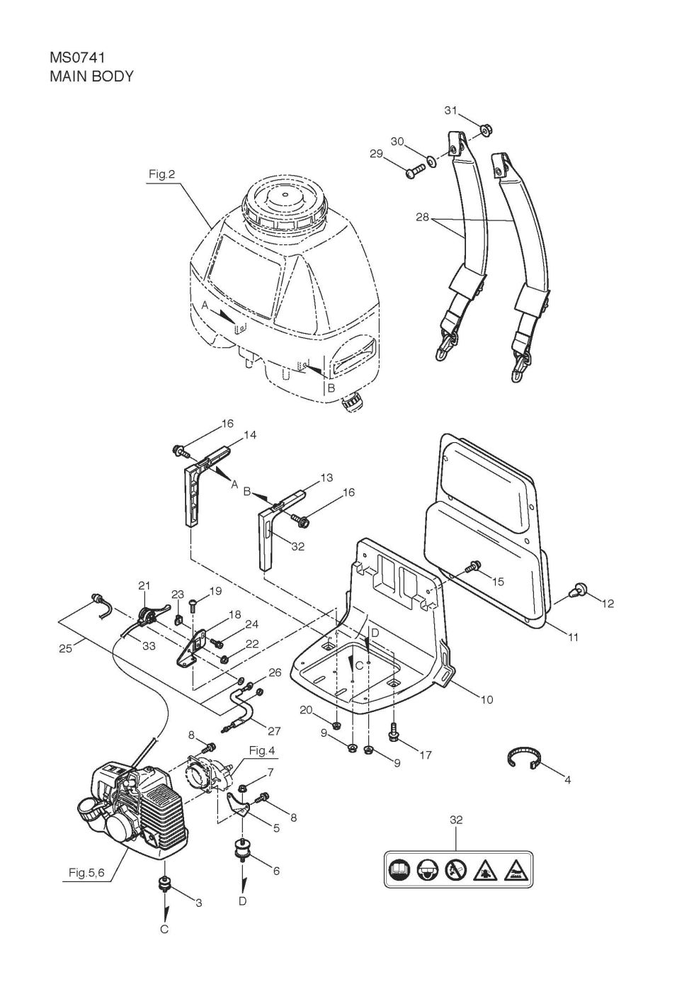 Thank you for shopping at MaruyamaParts.com and for using the parts lookup system to find parts for your MS0741. You have selected the Main Body diagram for the Maruyama MS0741 Engine Driven Sprayers. Below you will find an interactive part diagram for the MS0741 Main Body. If you find the part in the diagram you need you may click on the item number in the diagram or find it in the parts list below the diagram. For the MS0741 parts not shown in this diagram you may select from one of the other MS0741 part assemblies or select a different Engine Driven Sprayers altogether. Thanks for shopping with us at MaruyamaParts.com and for making us your source for Maruyama Engine Driven Sprayers parts.